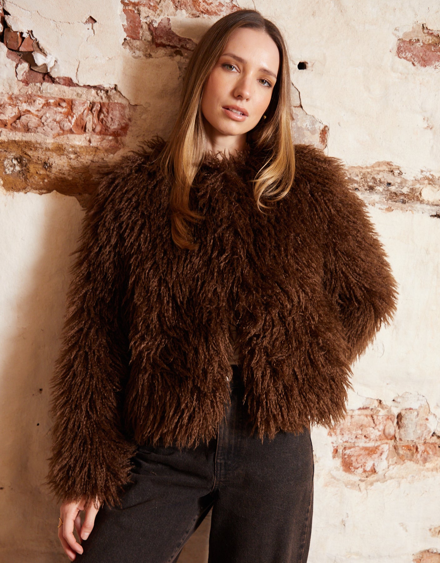 A bohemian staple, our faux fur Mongolian coat is here to complete your cold weather wardrobe and embrace the vintage style.