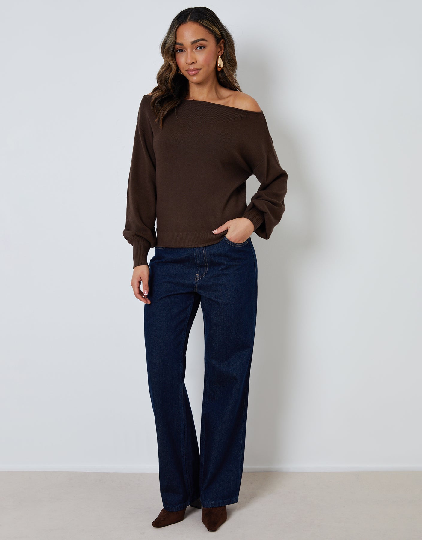 From office to date night to casual weekends, this slash neck soft knitted jumper from Threadbare is the staple to covet this season.
