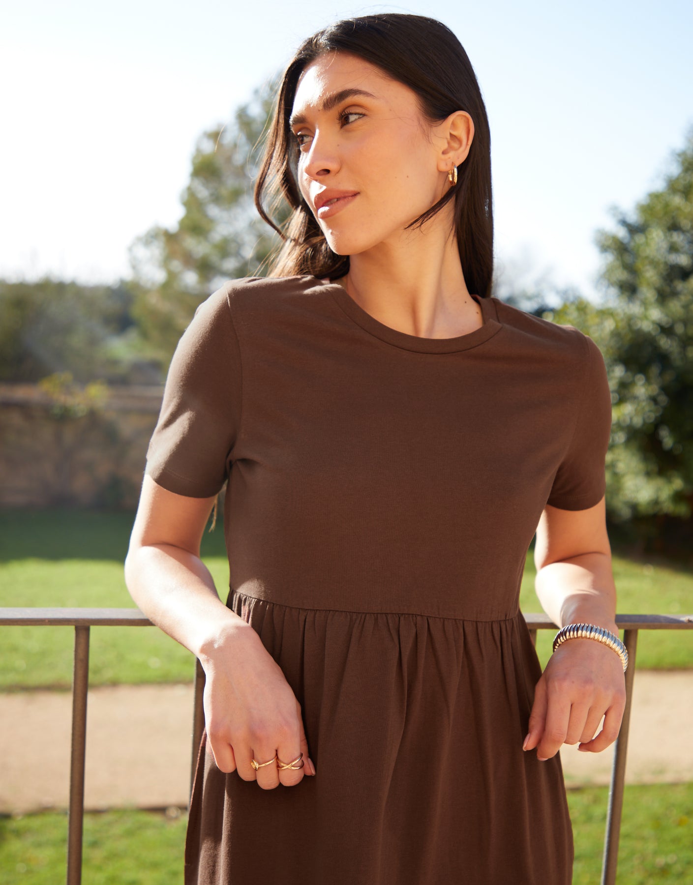 Chocolate Brown Jersey Maxi Dress with Pockets