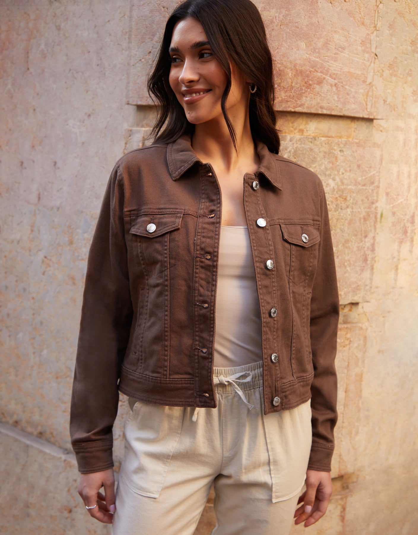 Chocolate Brown Stretch Denim Jacket