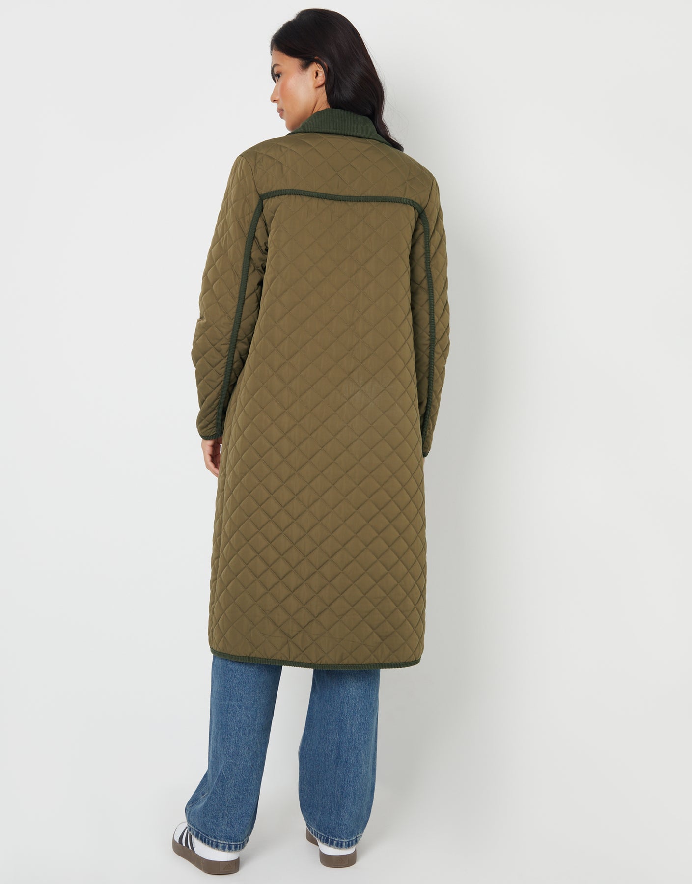 Prepare for cooler weather with this diamond quilted heritage longline coat from Threadbare.