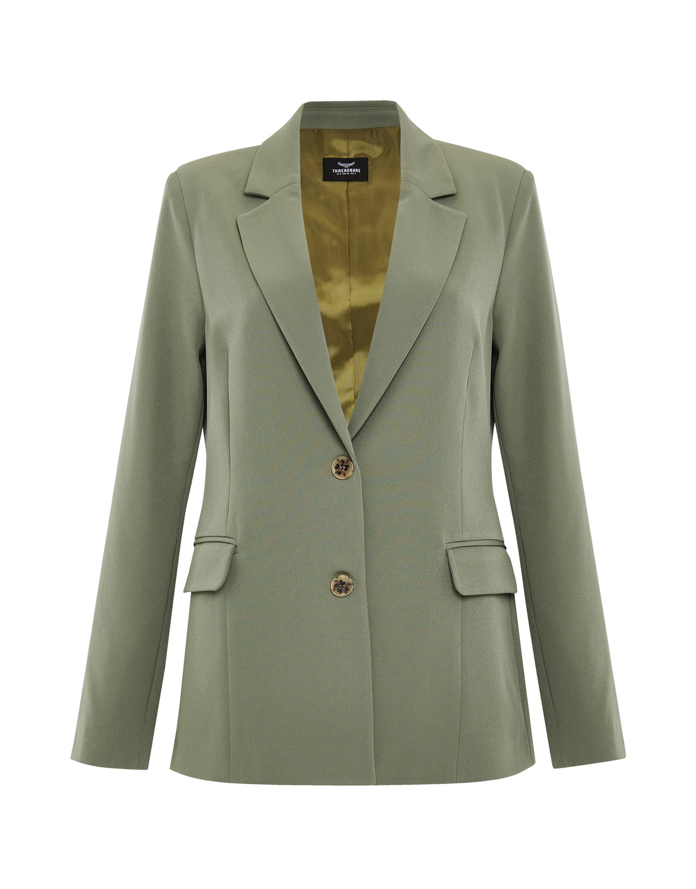 Khaki Green Single Breasted Relaxed Fit Blazer