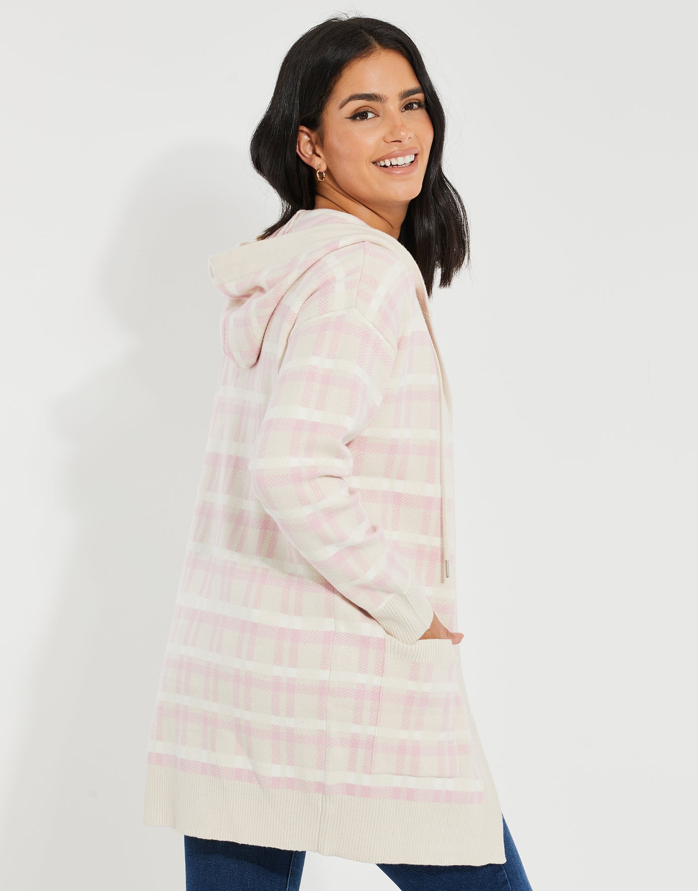 Finish your outfit with a new warm hooded knit: our Threadbare check knitted hooded cardigan.
