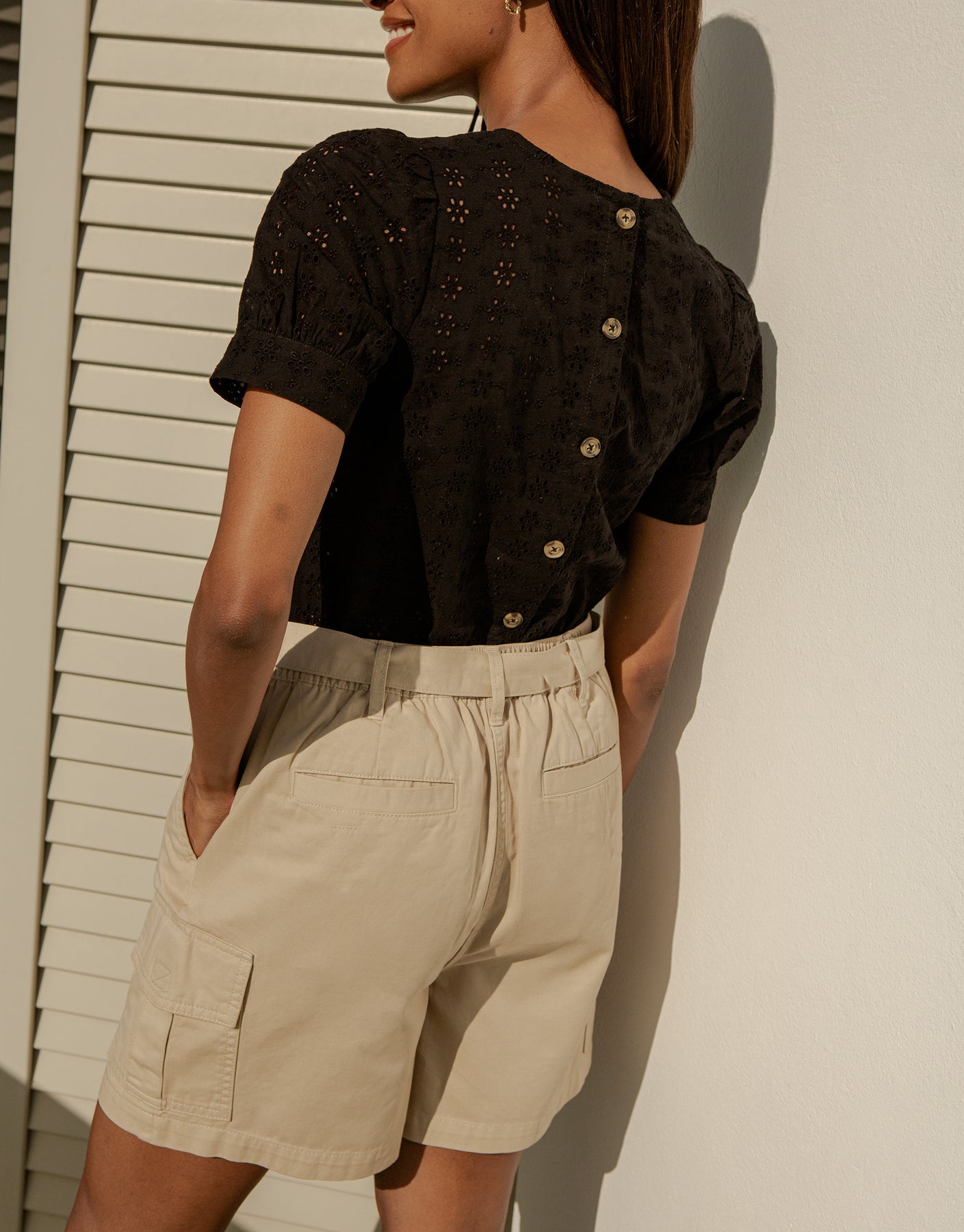 Cut in a regular fit with a straight leg, these cargo shorts are a staple for elevated seasonal dressing.