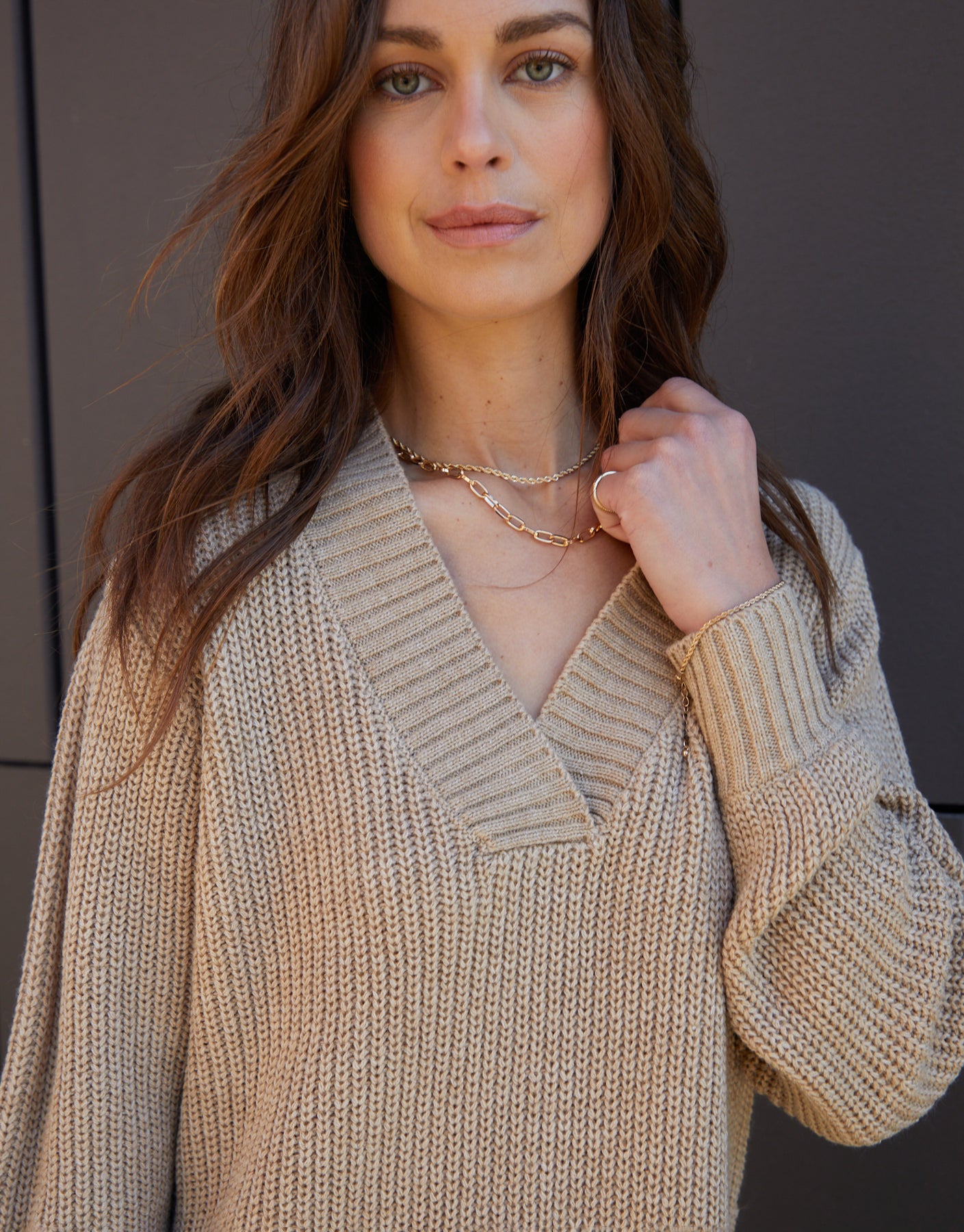 A casual piece in stone, show off your style in a slouchy sweater dress that’s simple to style. Cut in a relaxed fit with oversized balloon sleeves and a V neckline, you’re sure to look and feel cosy - the sought-after blogger-worthy combination that ticks the streetstyle and comfort boxes.
