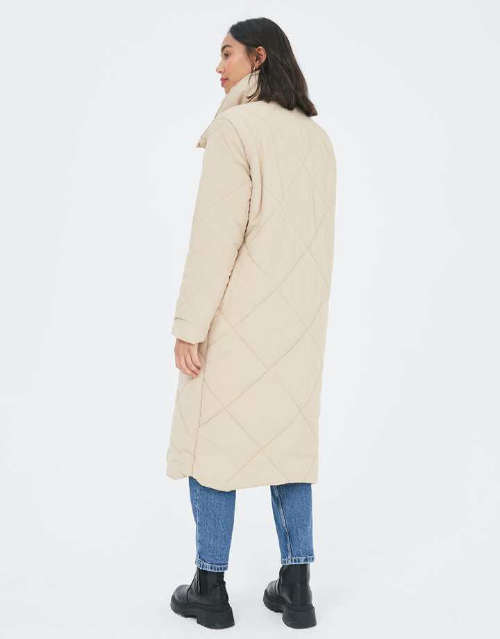 With diamond quilting and double-breasted wrap front that fastens with snap poppers, this coat has duvet sleeves and hem for a relaxed, je ne sais quoi effect.