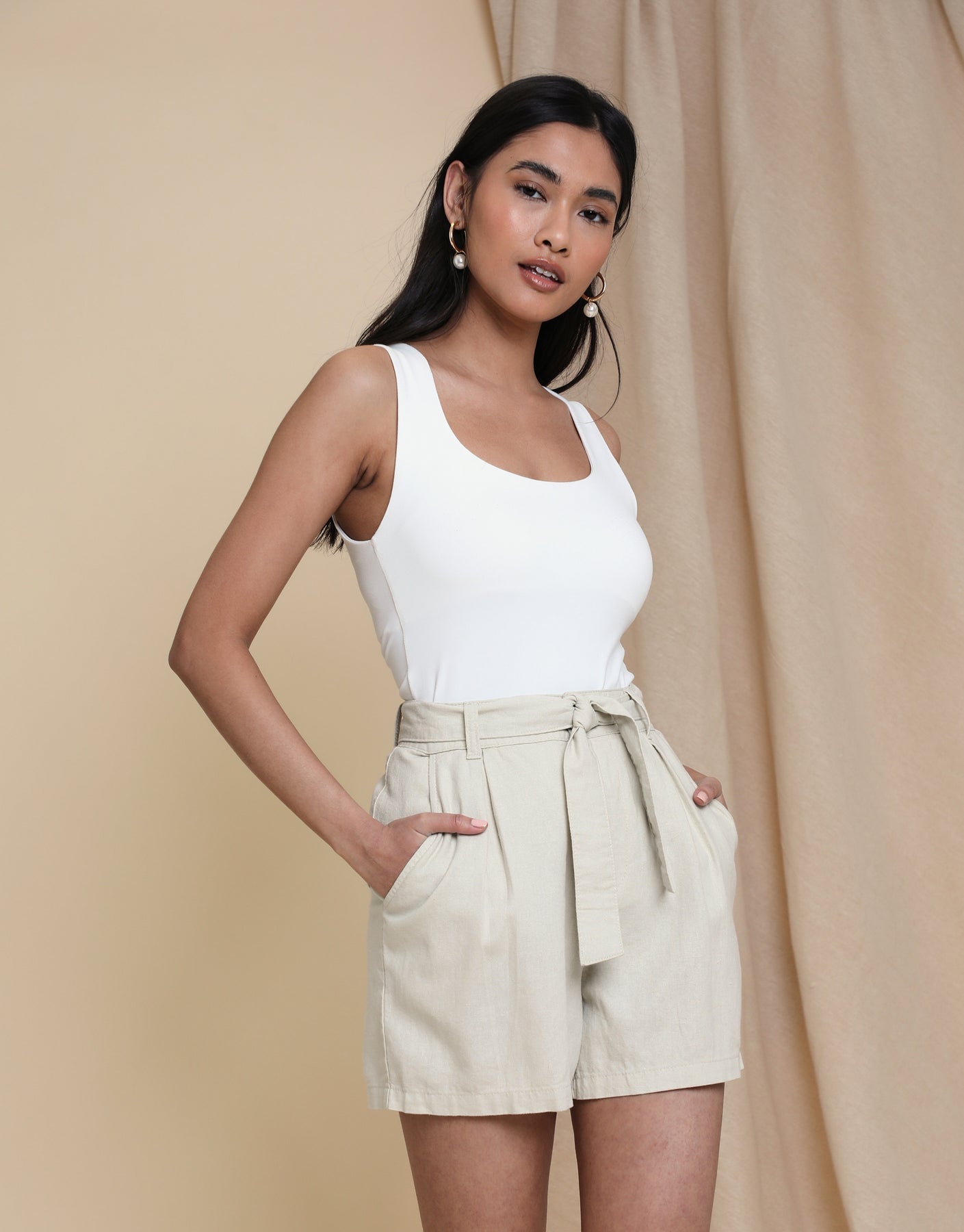 For relaxed feminine styling, these Threadbare linen blend pleated shorts are the perfect pair.