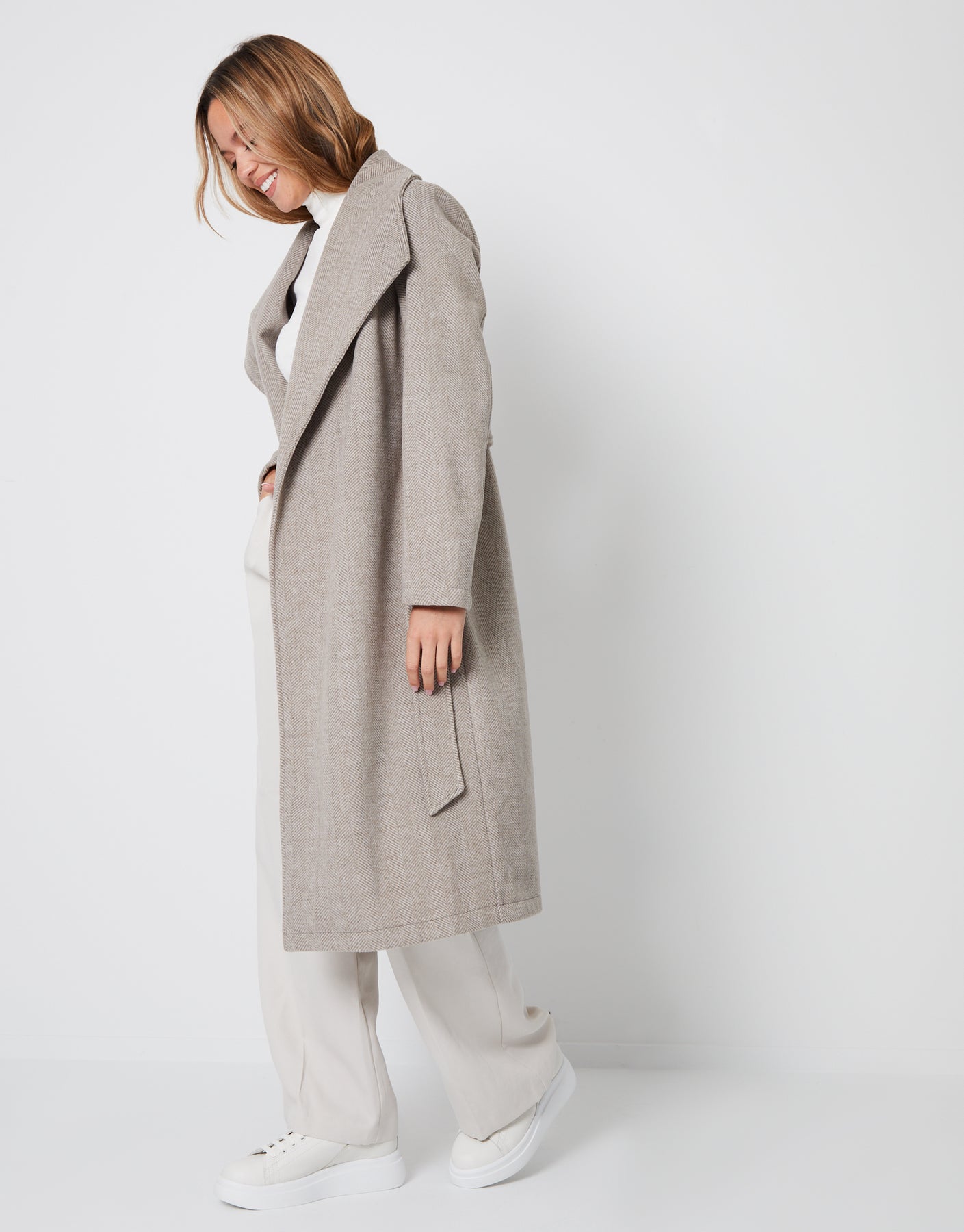 With an effortless shawl collar that has stitching for a premium finish, this smart coat in a maxi length fastens with a functional tie belt that gives it a chic silhouette.