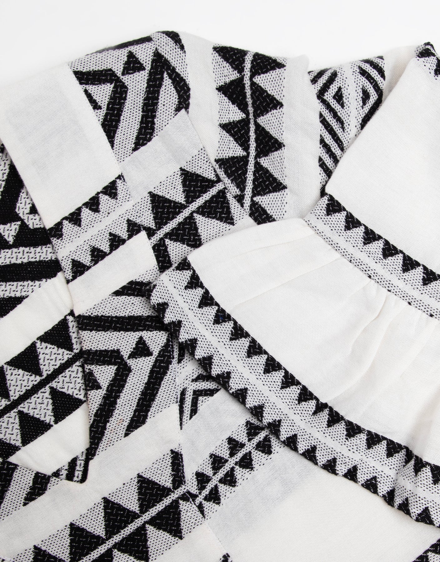 White & Black Embroidered Aztec V Neck Tiered Smock Dress