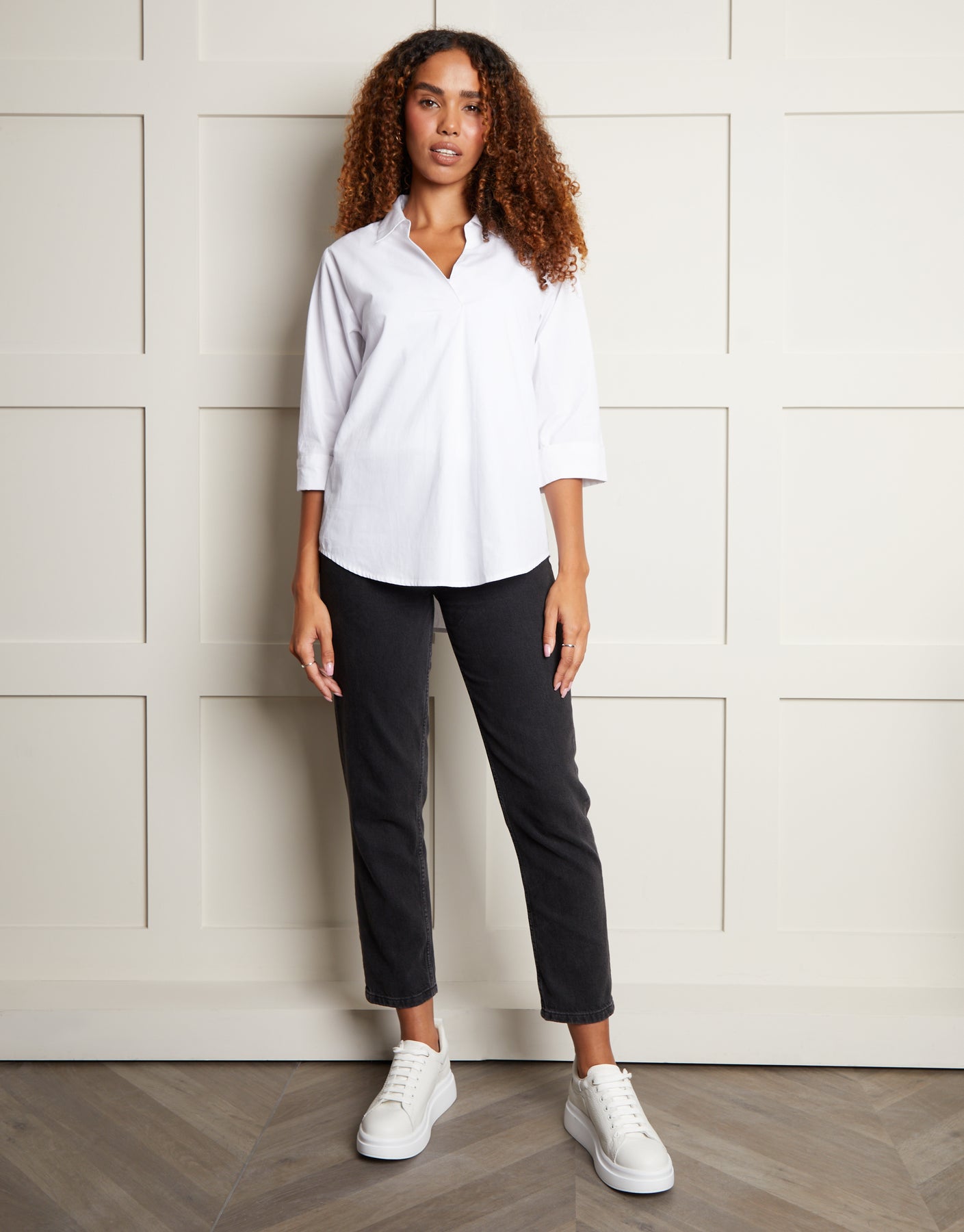 Cut with a curved hem, the back is slightly longer for that enviable relaxed look.